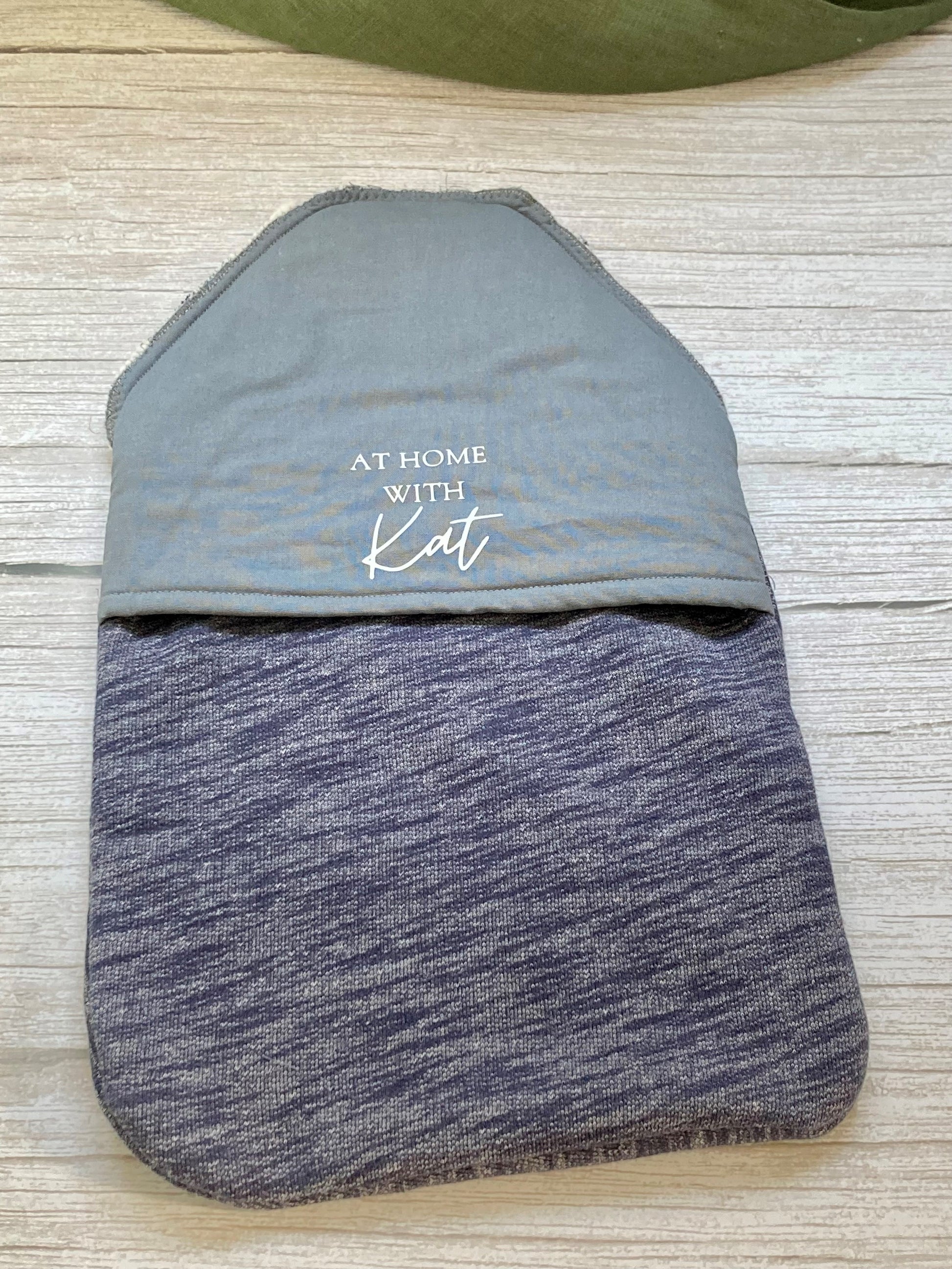 Navy blue and grey/gray jersey hot water bottle cover - made from natural bamboo wadding and lined with grey/gray cotton fabric.