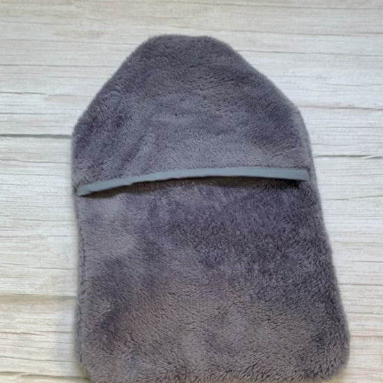 Soft, grey and fluffy hot water bottle cover - made from natural bamboo wadding and lined with grey/gray cotton.