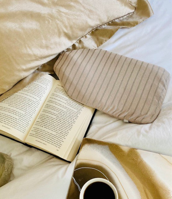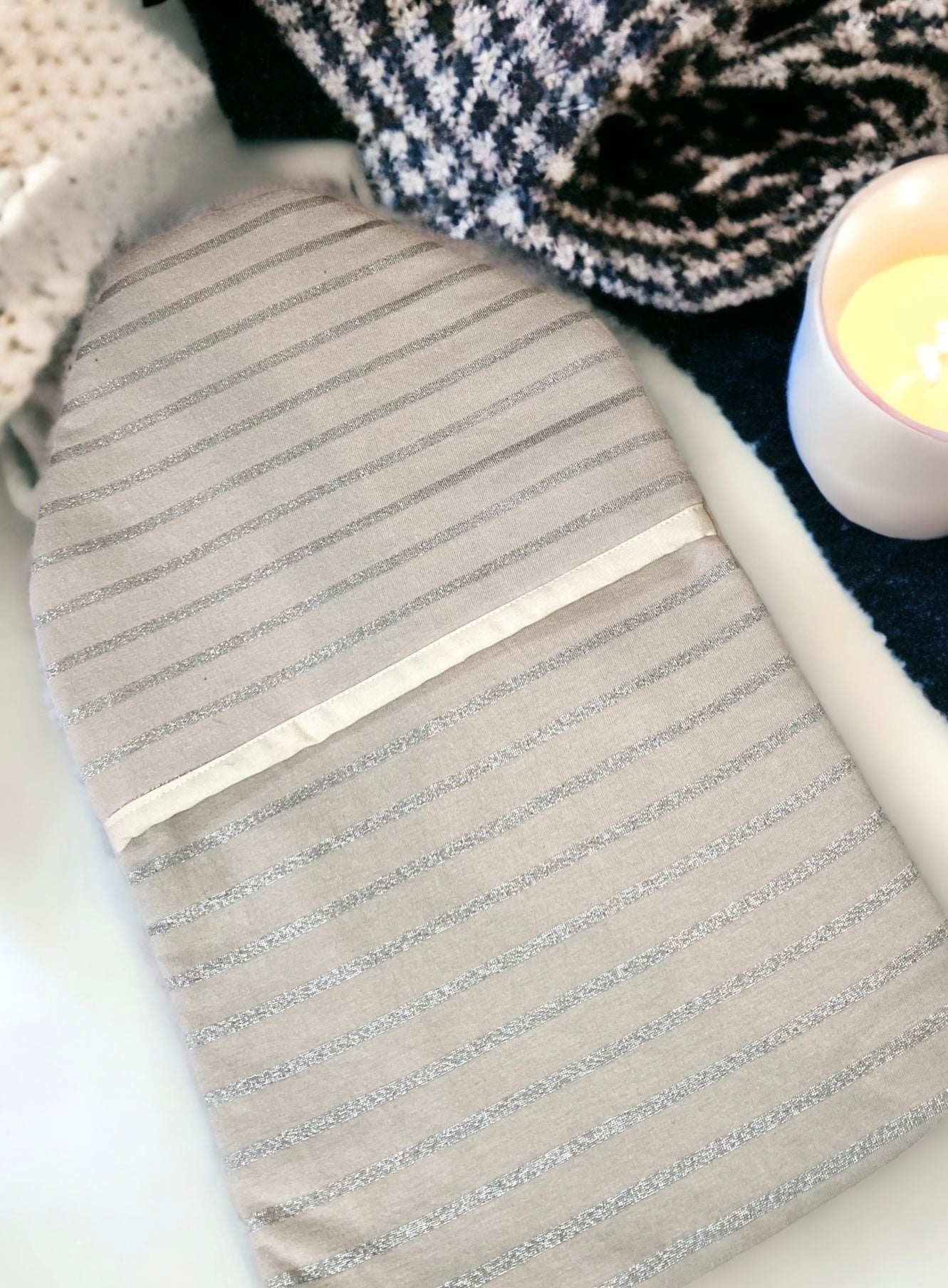 Super soft beige/cream hot water bottle cover with silver stripes - made from natural bamboo wadding and lined with cream cotton.